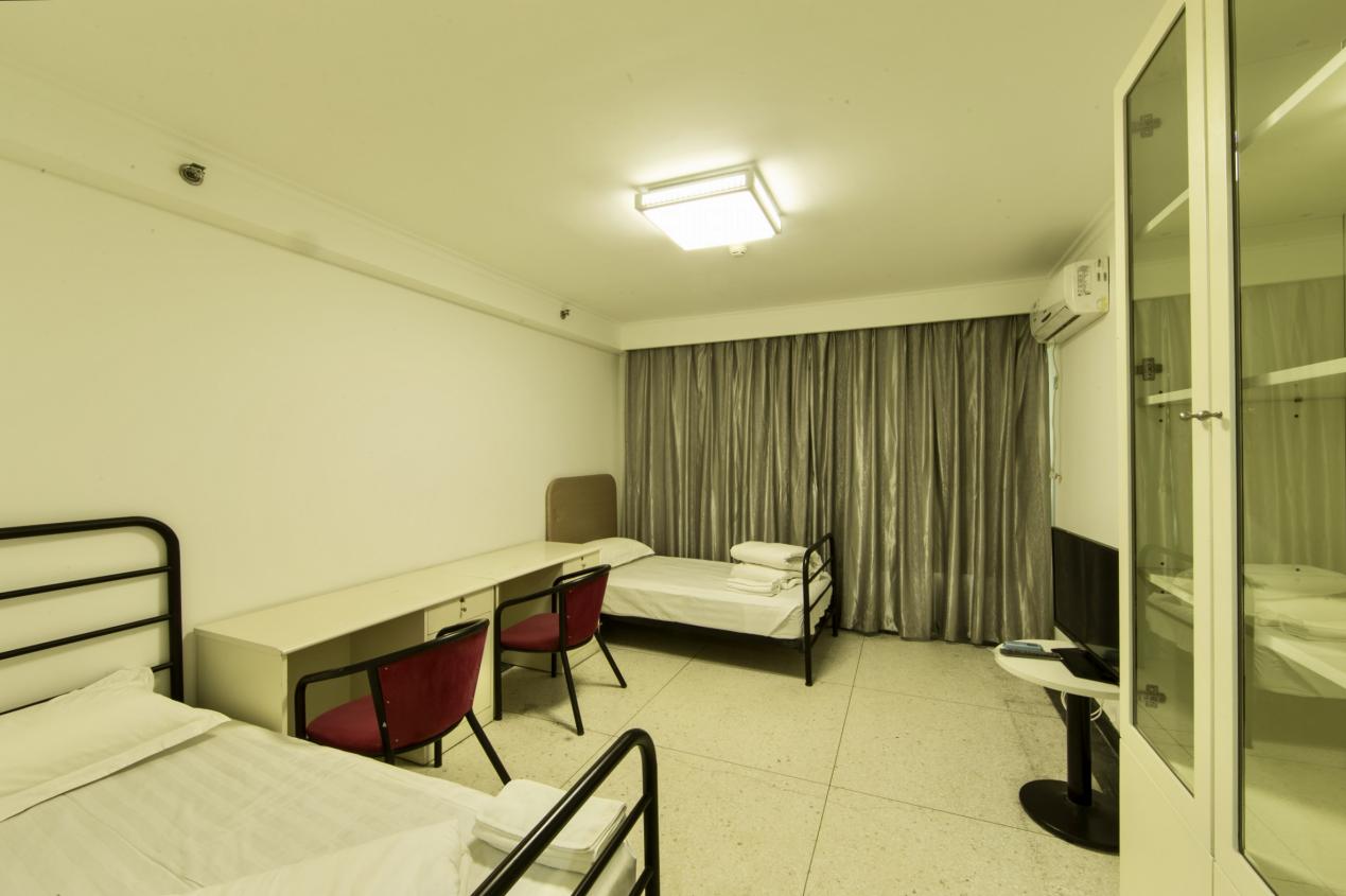 国际交流中心简况:每套房有独立卫生间,24小时提供热水。每个房间配有空调、有线电视(可收看CNN等频道)、书桌、书厨、电话等。集中供暖,安装了自动火警系统。特定楼层还为留学生设立可自助料理饮食的公用厨房。如果需要使用互联网、购买长途电话卡、发传真、洗衣等,可与国际交流中心前台联系。