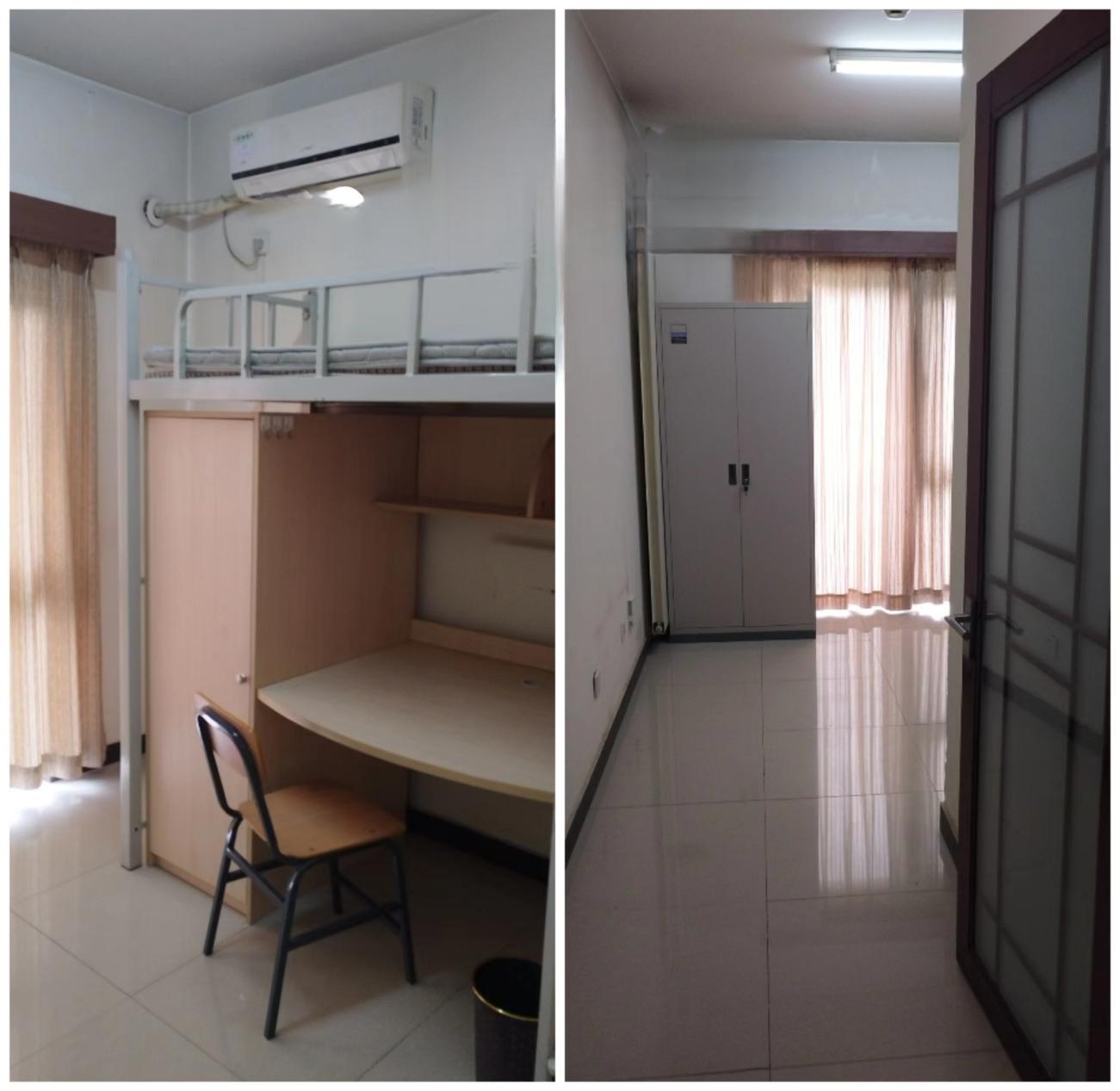房间内均有独立卫生间,每天16:00-22:00提供洗澡热水。房内配备空调、网络插口、有线电视信号(需自配电视)、书桌、书柜、衣柜、单人床、有开放式阳台供晾晒衣物。