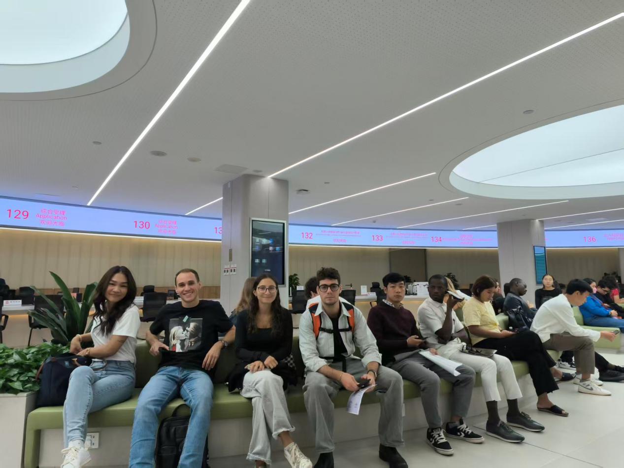 9月18日,留办组织留学生新生前往北京市西城出入境管理办事大厅进行签证面签,办理长期学习类居留许可。